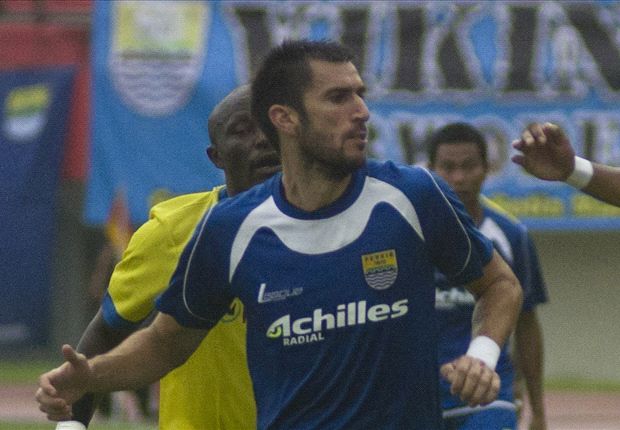 Jelang laga Persib Bandung kontra Persija Jakarta, 8 Mei 2014, di stadion Si Jalak Harupat. Bek tengah asing milik Persib Vladimir Vujovic mengantisipasi momen reuni dirinya dengan striker asing Persija, Ivan Bosnjak.