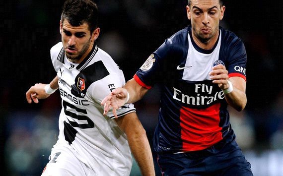 Gelandang Javier Pastore mendapatkan peluang emas ketika ia menaklukkan kiper Rennes, tetapi bek tim tamu mampu menyapu bola sebelum melewati garis gawang.